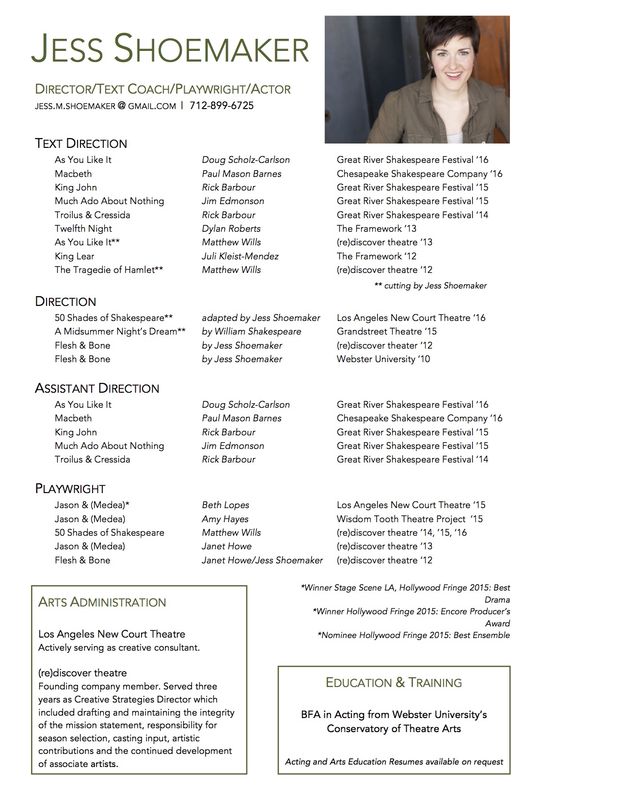 Jess Shoemaker – Directing-Text Direction Resume