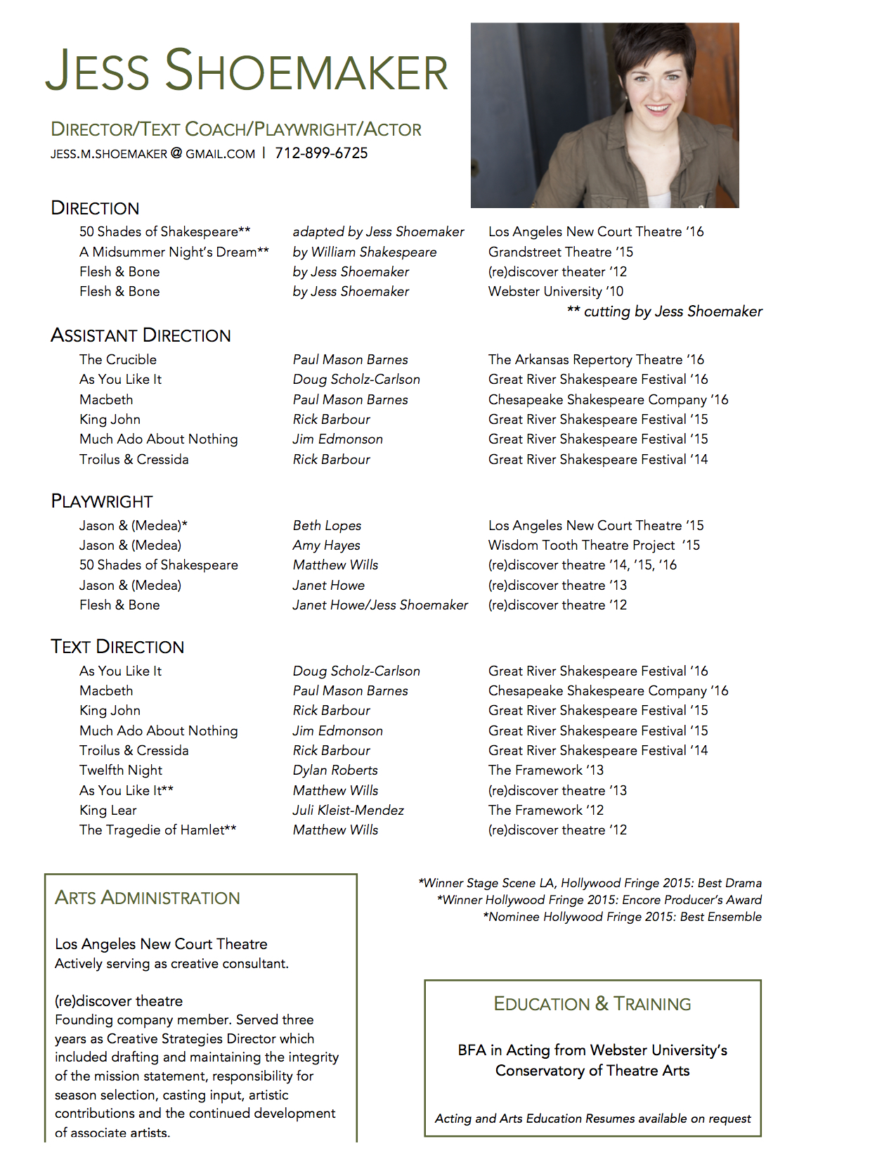 Jess Shoemaker – Directing-Text Direction Resume