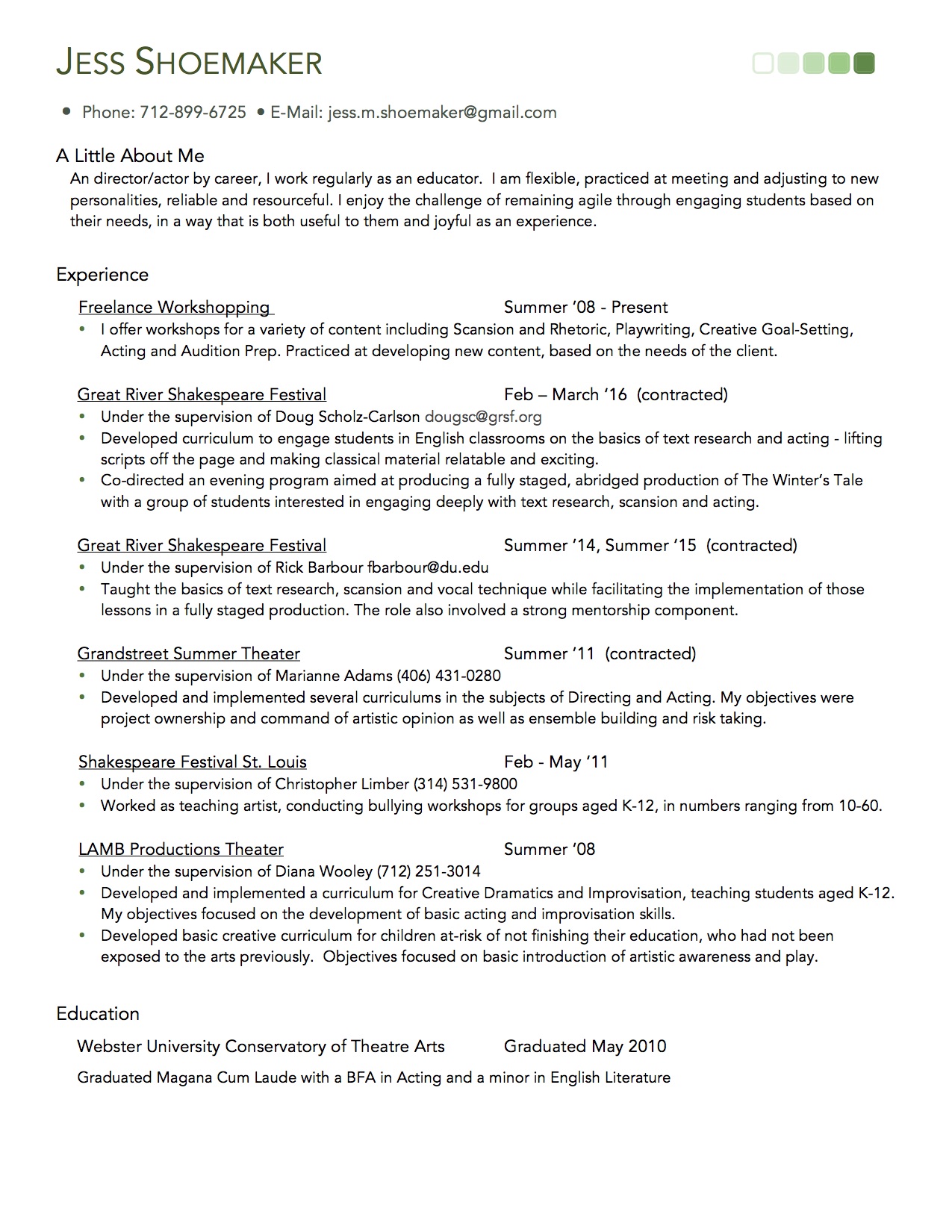 Jess Shoemaker – Education Resume